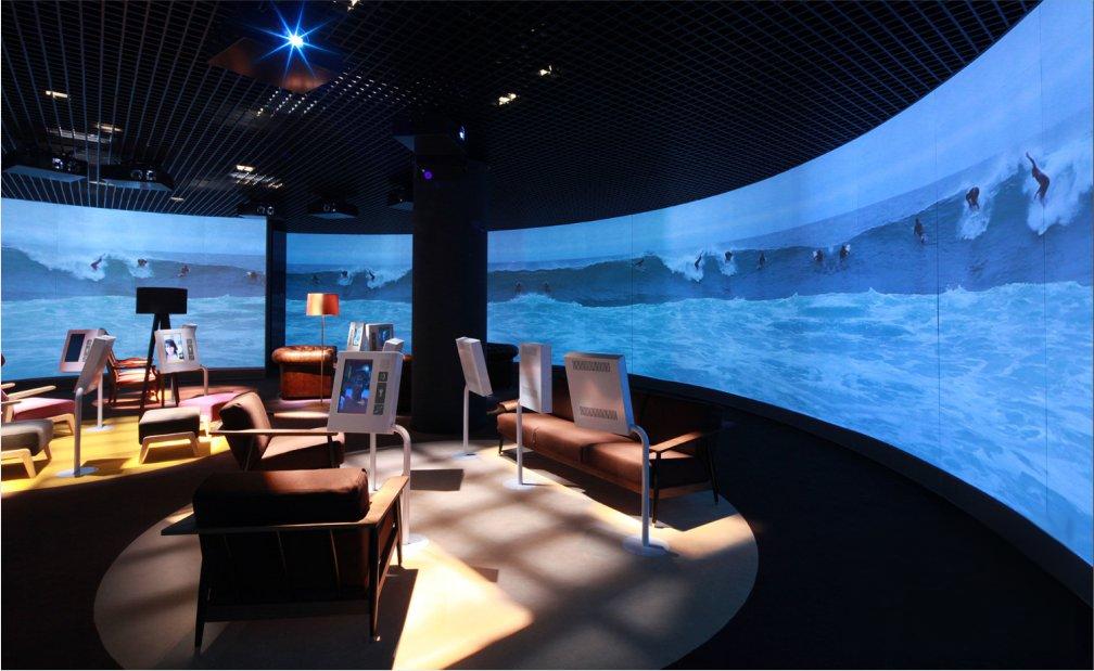 120°-360°環(huán)幕影院不同于一般的電影屏幕,環(huán)幕影院采用柱面投影屏幕 ,將觀賞者圍繞在中心。超長(zhǎng)跨度的廣闊畫面充滿觀賞者的視野,全方位立體聲與影片情節(jié)相輔相成。柱面投影屏幕的弧度有360度、270度、180度等多種選擇,可根據(jù)場(chǎng)地具體情況進(jìn)行個(gè)性化設(shè)計(jì)和施工,保證環(huán)幕影最佳的視聽效果。